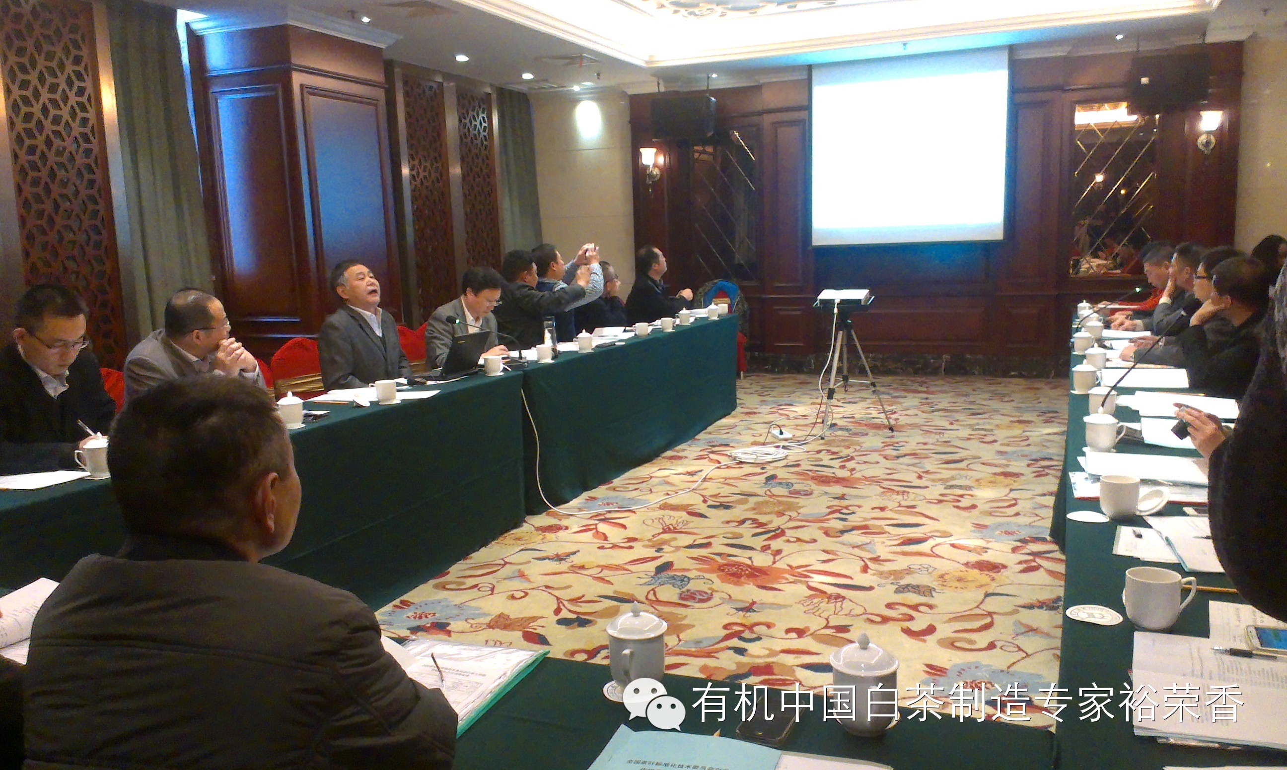 下午,会议由全国茶标委委员、白茶工作组副组长蔡良绥主持。茶标委秘书长翁昆研究员作近期实施的茶叶标准宣贯和提高标准研制质量的报告。全体组员审议通过了白茶工作组2014年度工作总结报告,讨论了裕荣香等企业参与起草的国家标准《白茶加工技术规范》送审稿、国家标准《白茶》修订稿草案及福建省地方标准《白茶冲泡与品鉴》草案。